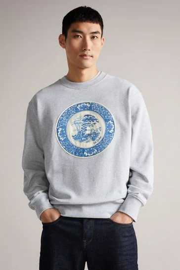 Ted Baker Elbe Grey-Marl Relaxed Fit Graphic Sweatshirt