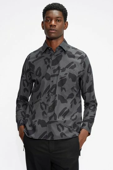 Ted Baker Grey Animal Print Karpass Long Sleeve Shirt