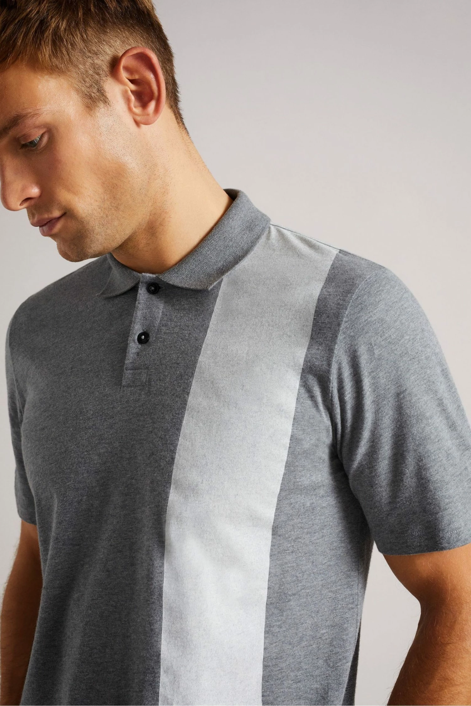 Ted Baker Grey Marl Chiping Short Sleeve ‘T’ Print Polo Shirt