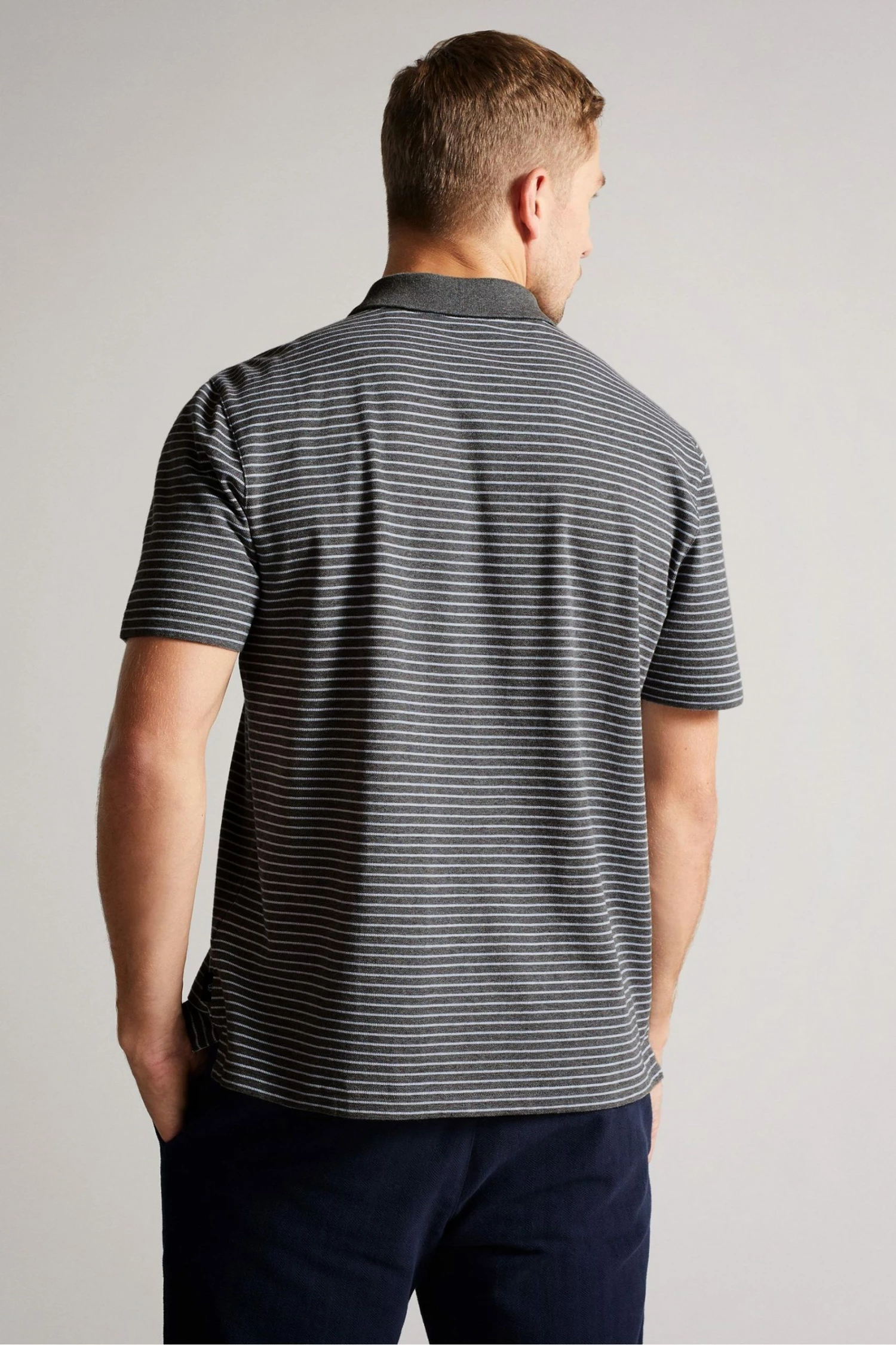 Ted Baker Grey-Marl Ravens Ss Striped Pique Polo Shirt