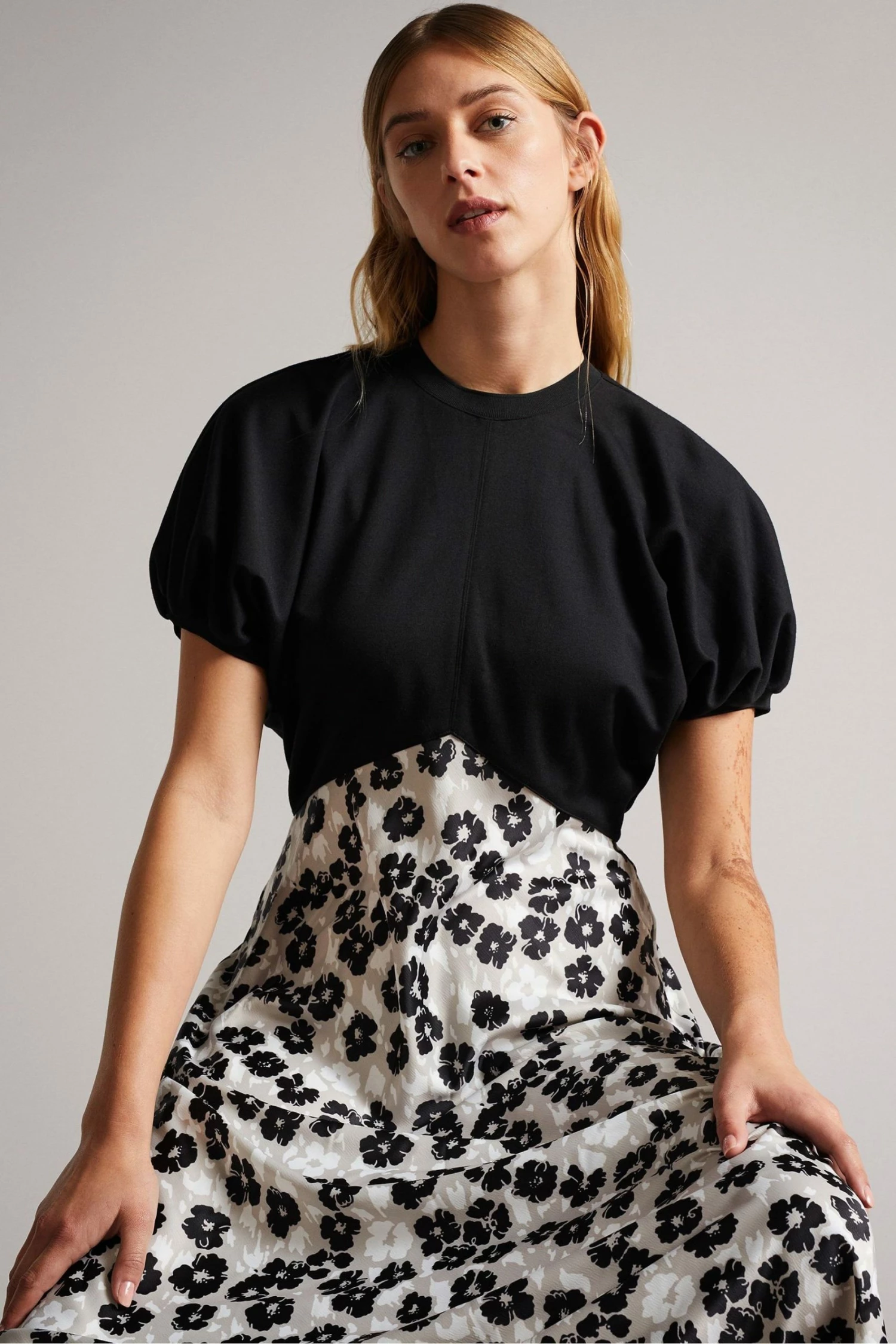 Bursting with new season style, this Gwiana midi dress from Ted Baker is designed with an empire silhouette for an effortlessly chic look. In a monochrome colourway with puff sleeves, round neckline and zip fastening.