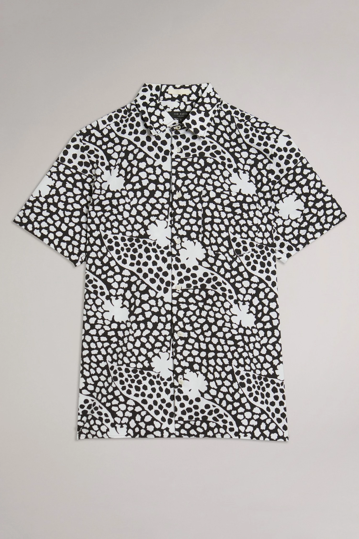 Upgrade your work shirts ready for the summer with this Ted Baker addition to your wardrobe. Designed with an all over geo flowers and polka dot print, the shirt is fitted with short sleeves, button up front and collar that can be worn on its own or under a smart jacket or blazer this season.